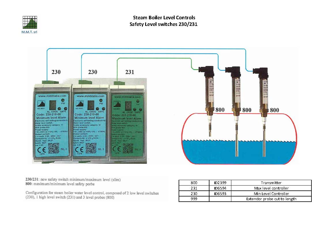 Safety switches The water level in a steam generator must constantly be monitored to prevent it from falling below the minimum level established by the designer. In this case the generator could be seriously damaged, causing serious damage to people and property. It is for this reason that the control of the water level must be entrusted to safety devices compliant with the European PED Directive, certified by specific bodies.